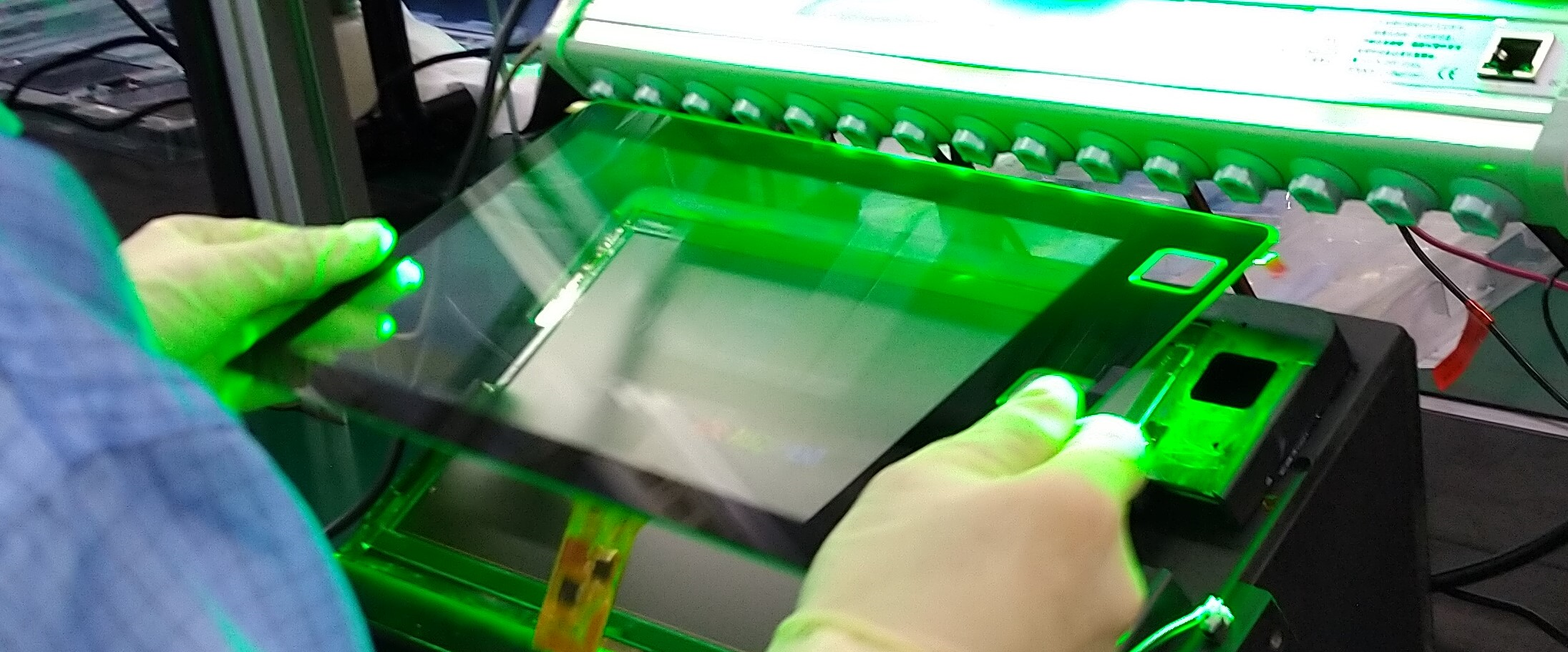 Capacitive and resistive touchscreens are available in our Taiwan factory for large display. For small form factor touch screens there is a Malaysia factory that we represent. We can mechanically integrate the touch panel module onto the LCD. We can accomplish this by way of either air-bonding or optical bonding.